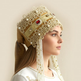 Кокошник Хозяюшка - лаконичный по форме, красивый по сочетанию цветов, изысканный по материалам, благородный по образу.