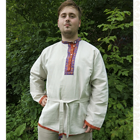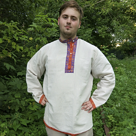 Пошив рубахи возможен с учетом индивидуальных размеров. При оформлении заказа стоит уточнить свой рост, ширину груди, плеч и длину рукавов.