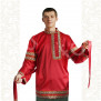 Косоворотка "Важный день" с кушаком (поясом) традиционного русского кроя. Выполнена из плотного сатина (атлас на хлопковой основе) декорирована яркой жаккардовой тесьмой с люрексом. Такое сочетание ткани и декора делает рубаху яркой, праздничной. Особенно уместна в Рождество, Масленицу, Пасху, свадебной день, на театральной сцене.