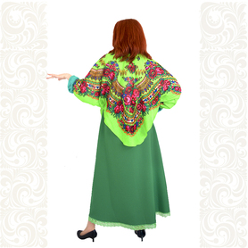 • Накидка, выполненная из платочной ткани. Горловину и манжеты украшает искусственный мех.