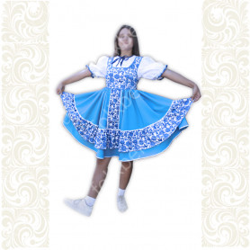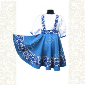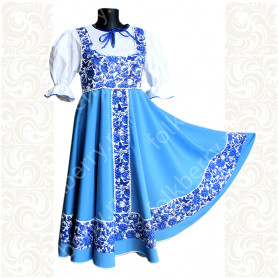 Костюм «Зима» выполнен в сине-белой цветовой гамме. Накидка декорирована яркими красными цветами.