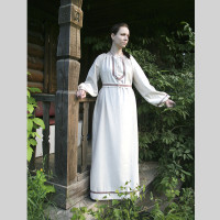 Фасон платья очень удачный и хорошо подходит всем покупательницам: горловину можно регулировать, рукав реглан хорош для всех типов фигур, удлиненный и немного расклешенный силуэт, как принято на Руси, слегка завышена талия. К платью прилагается длинный пояс с декором. Хочется отметить, что платье хорошо сидит на крупных и полных фигурах.
