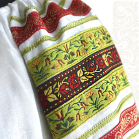 Материалы: габардин, жаккардовая тесьма, вьюнчик.