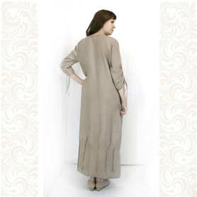 Фасон: Удобная длина – чуть ниже колена, талия завышена, с поясом, рукав – реглан, регулируемая горловина, юбка –  почти-солнце.