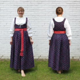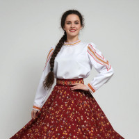 Фасон: Юбка – почти солнце, длиной чуть ниже колена, завышенная талия, рукав реглан, регулируемая горловина, пояс в комплекте.