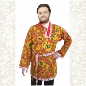 Мужская рубаха «Истоки» выполнена из хбелого льна, имеет втачной рукав. По низу изделия, вороту и рукавам расположена жаккардовая тесьма с обережным рисунком. Дополняет рубаху кушак (пояс) из ткани с тесьмой.