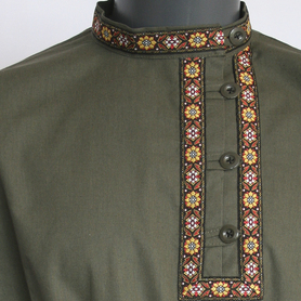 Рубаха Истоки, небеленый лен с зеленым