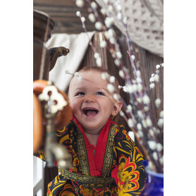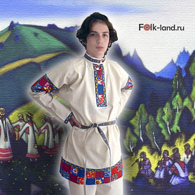 Изделие комплектуется кушаком (поясом) из ткани с тем же декором.