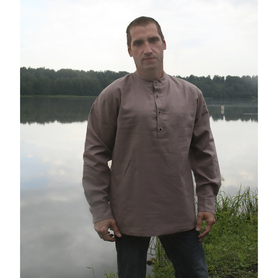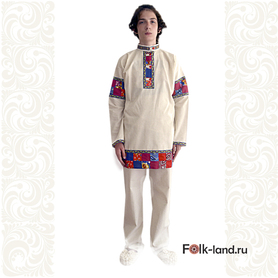 Рубаха мужская «Истоки» удобна в носке, так как выполнена из дышащей, легкой льняной ткани, с коротким втачным рукавом, свободной горловиной. Низ изделия, ворот и рукава украшает жаккардовая тесьма с обережным рисунком.