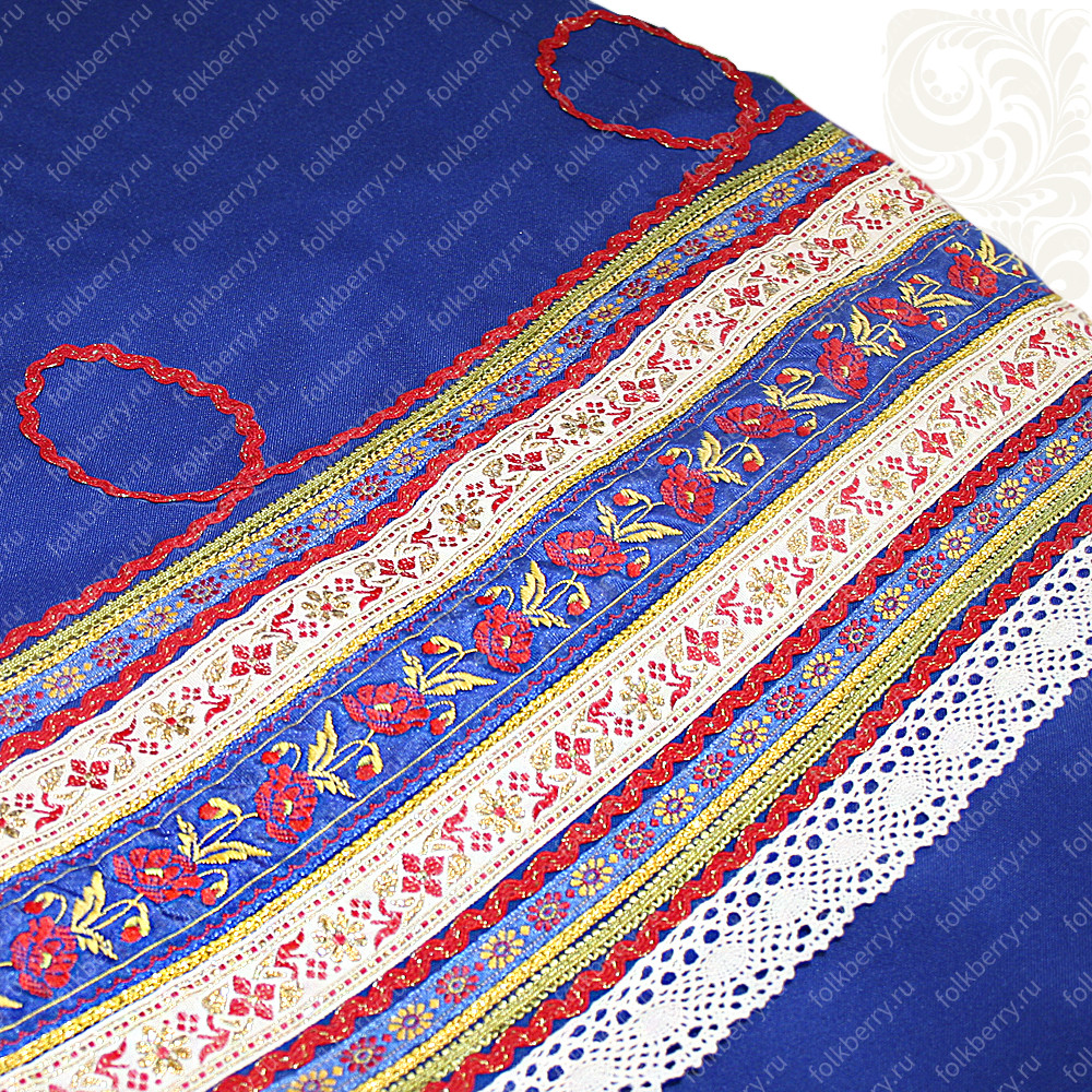 В комплекте с сарафаном идет белая блуза. По индивидуальному заказу она может быть сделана либо из хлопка, из шифона, либо из атласа. Блуза имеет пышные длинные рукава с резинками на запястьях и украшением в виде жаккардовой тесьмы.