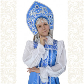 Хочется сделать костюм более эффектным? Предлагаем дополнить его головными уборами в русском стиле (очелье, кокошник или сорока), а на шею яркие красные бусы.