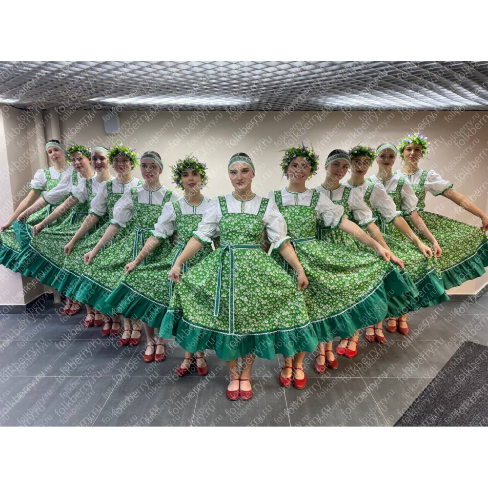 Сарафан с блузой – яркий наряд в духе народных традиций. Оригинальный дизайн, красивые оттенки синего, бирюзового, белого цветов, качественное исполнение комплекта порадуют Вас. Это хороший выбор для участников танцевально-театральных коллективов.