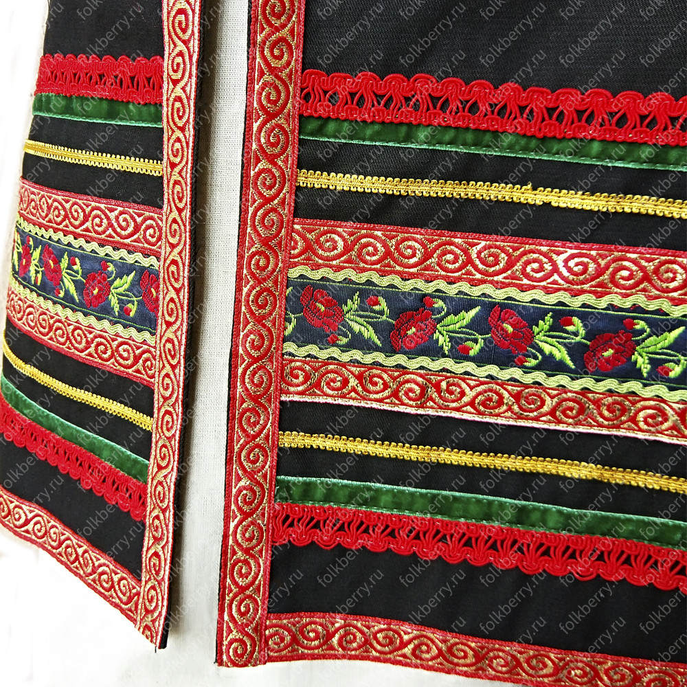 Материалы: габардин, жаккардовая тесьма, вьюн, бархатная тесьма.